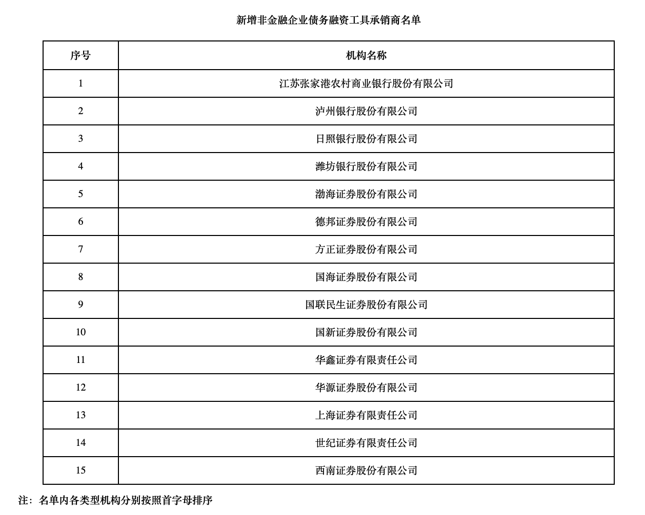 3.新增非金融企业债务融资工具承销商15家,涵盖多家地方性银行,如江苏张家港农村商业银行、泸州银行等。
